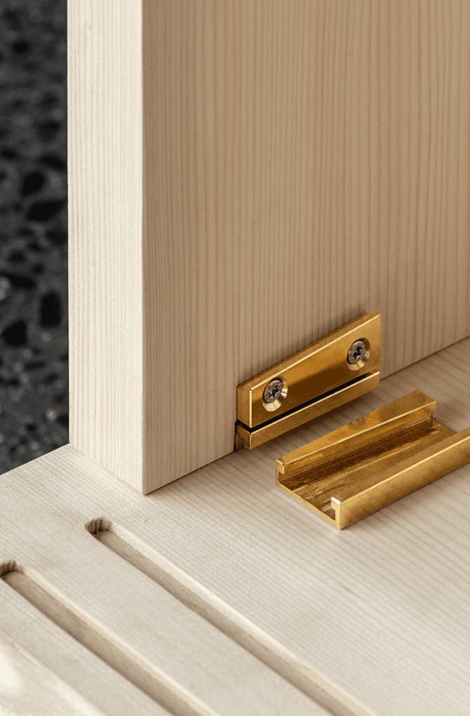 Pius: Ein Beschlag hat den Vorteil, dass ich im Endeffekt kein spezielles Werkzeug dazu benötige, um die Möbel auf- und abzubauen. Sie dürfen auch nicht verleimt sein. Ein Laie sollte das Möbelstück ohne Bedienungsanleitung, völlig selbsterklärend und ohne Fachkenntnis auseinandernehmen und wieder aufbauen können. Das war die Anforderung für euch, um einen in Form und Funktion perfekt dazu passenden Beschlag zu entwickeln.