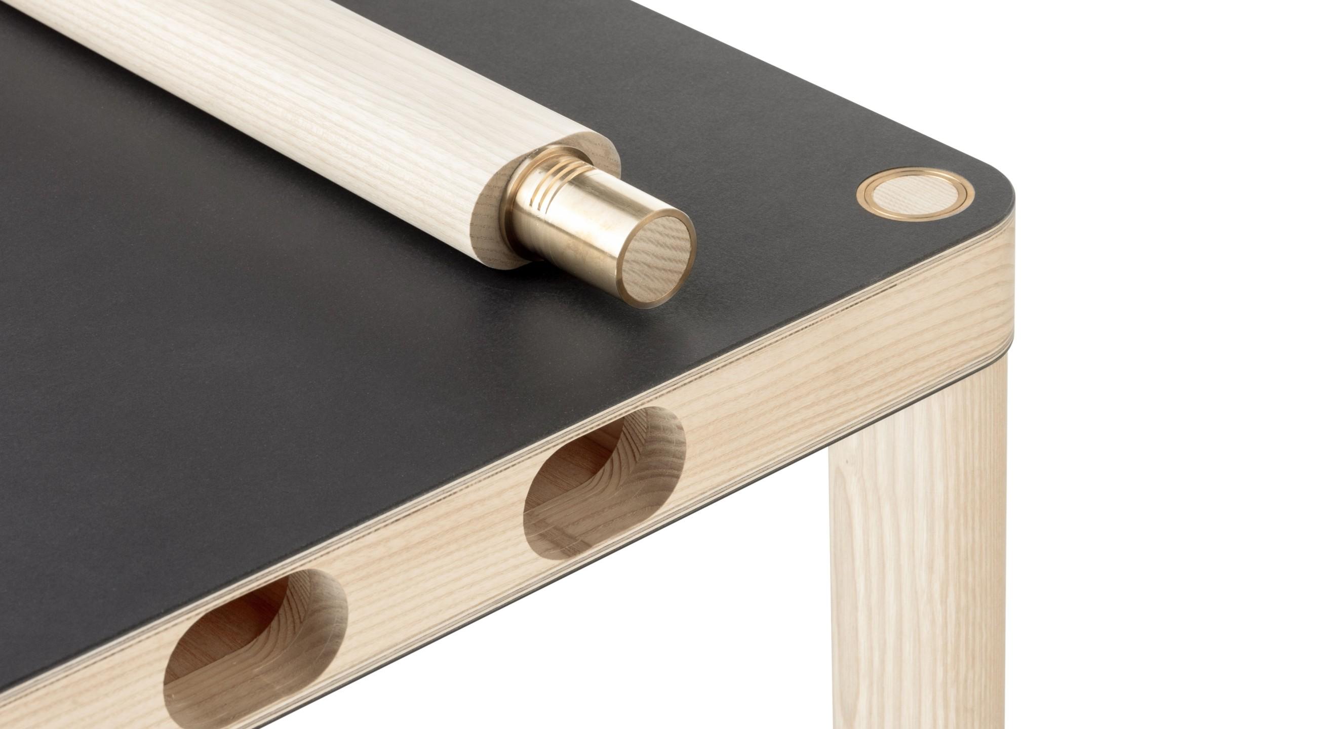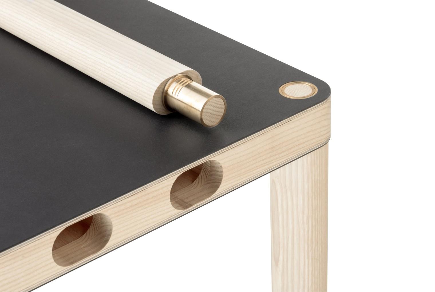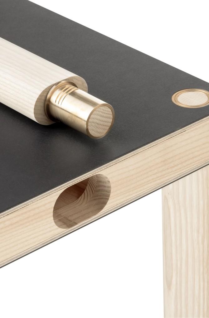 Begonnen hatte alles 2018, als Larissa und Martin über Möbel sprachen, die sich an die Wand hängen lassen. Sie dachten an mehrfunktionale Möbel, wie z.B. einen Tisch. Zusätzlicher Effekt wäre, dass ein solches Objekt in Zeiten, in denen Wohnraum kostbar und immer kleiner wird, nur bei Bedarf von der Wand geholt und als Tisch eingesetzt wird. Diesen Grundgedanken realisierten Planet Architects und Martin Bereuter als federführender Projektleiter. Sie entwickelten die Idee noch weiter mit einer beidseitig verwendbaren Tischplatte, die an der Wand eine zusätzliche Funktion erfüllt: Durch eine Filzbespannung an der Unterseite kann sie die Raum-Akustik dämpfen.