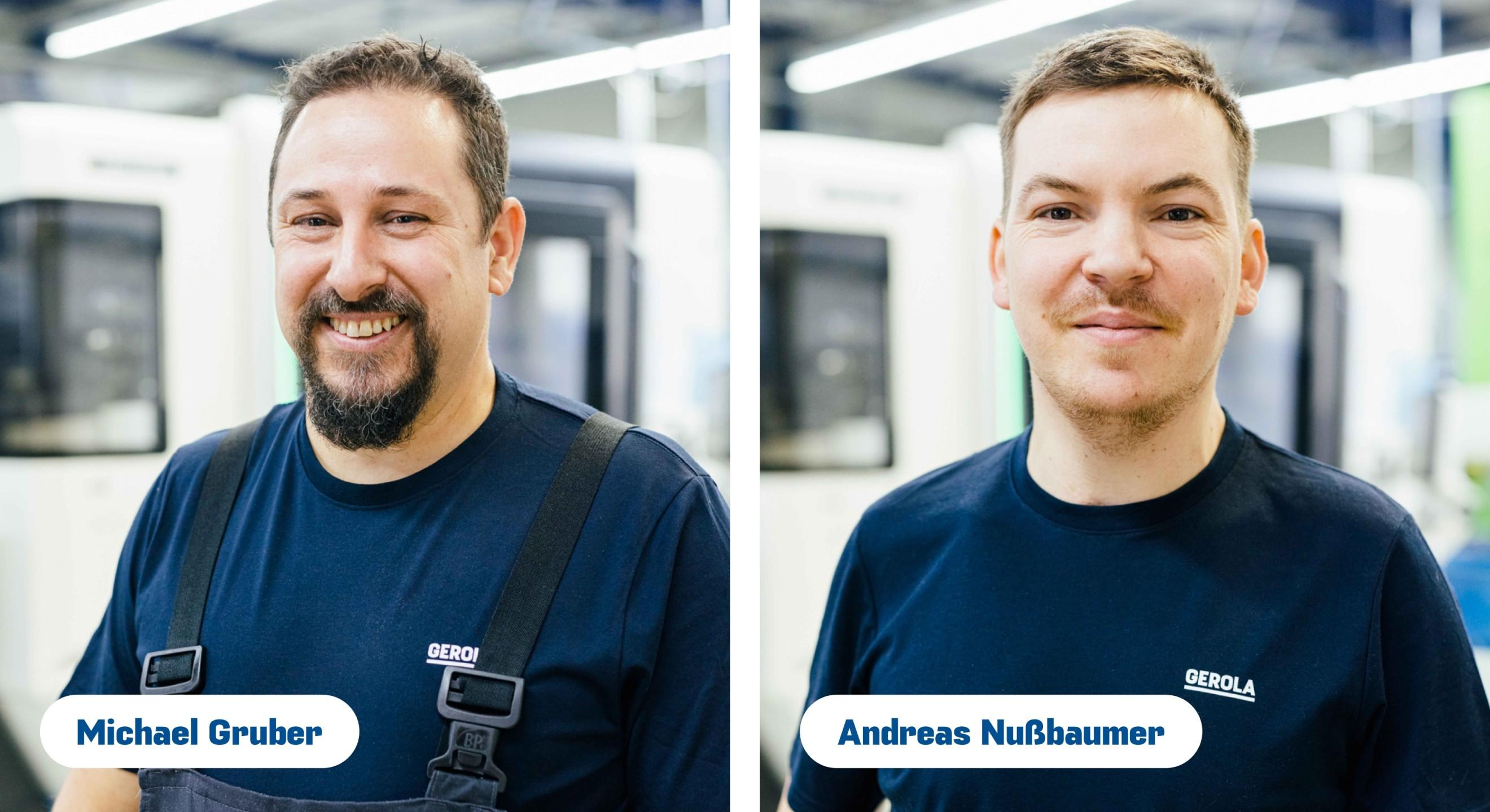 Auch nach 25 Jahren ist bei Gerola Metalltechnik ein junges Team aktiv. Natürlich sind auch „erfahrene Hasen“ dabei, was zeigt, dass der Teamgeist stimmt und sich die Beschäftigten gerne im Betrieb weiterentwickeln. Zwei von ihnen sind Michael Gruber und Andreas Nußbaumer. Beide haben vor jeweils 16 Jahren bei Gerola angefangen und bringen damit zusammen ganze 32 Gerola-Jahre mit ins Team. Wir haben sie gefragt, wie sie die spannende Entwicklung hautnah miterlebt haben und was sie sich für die Zukunft wünschen.